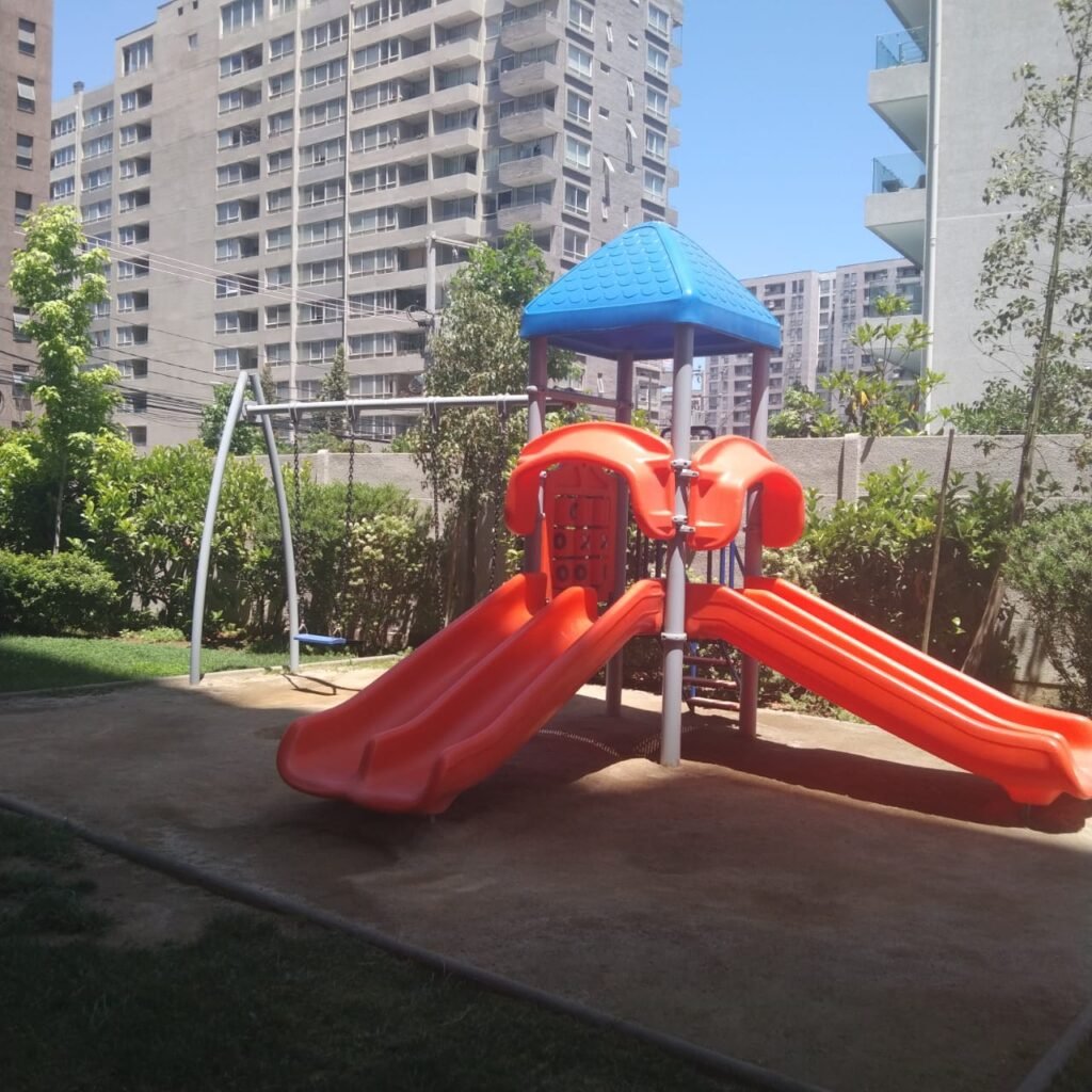 El edificio cuenta con estacionamiento para visitas, con parque para juegos infantiles, piscina, gym, sala para eventos, lavandería, quinchos, bicicletero, control de acceso las 24 horas, con excelente conectividad para el transporte público, a 8 minutos de la estación de metro San Miguel, cercano a minimarkets, farmacias, botillería y establecimientos de comida rápida.