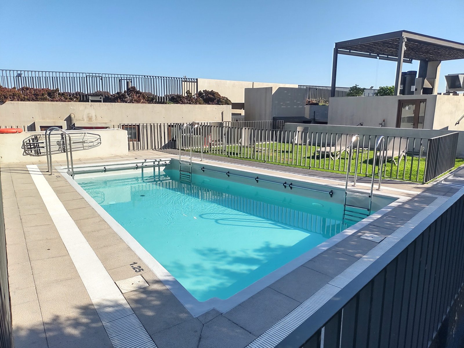 El condominio tiene piscina, jardines, quincho.